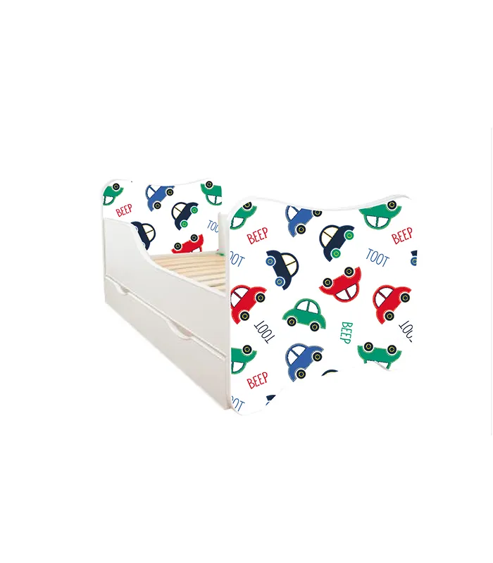 Napomena: Delove kreveta sa dezenom koji je štampan ne sme se brisati agresivnim sredstvima za čišćenje ili sredstvima koja sadrže alkohol u većoj količini, kao ni žicom ili zelenom stranom sunđera Napravljen od visokokvalitetnog ekološkog materijala Izrađen od najkvalitetnijih ploča za nameštaj Kronospan (tvrdo presovani Univer visokog kvaliteta rađen po najsavremenijim standardima i propisima EU), čije su ivice zaobljene i učvršćene fleksibilnim PVC furnirom za bezbednu i udobnu upotrebu dece Zdravlje dece nam je na prvom mestu, zbog toga su boje koje su korišćene u izradi kreveta isključivo boje koje u sebi ne sadrže teške metale i štetne materije Dezeni na krevetima su štampani najmodernijom tehnologijom koja odgovara svim evropskim standardima Boje koje su korišćene za štampu su ekološke, zdravstveno ispitane, ne sadrže teške metale niti bilo kakve štetne supstance Osim toga, sigurnost dece nam je takođe veoma važna. Svi kreveti su napravljeni tako da umesto oštrih ivica, sadrže ovalne, samim tim, sprečavamo da dolazi do mnogih potencijalnih povreda, a vaša deca se mogu neometamo igrati u okolini kreveta Želeli bismo još da naznačimo da su svi kreveti napravljeni uz obraćanje pažnje i na najsitnije komponente, sa željom za vrhunskim kvalitetom. Napravljeni su modernom tehnologijom, komjuterski kontrolisanim mašinama koje obezbeđuju da krevet bude potpuno bezbedan, praktičan i veoma udoban. Šareni motivi takođe podstiču i kognitivni razvoj deteta, kroz igru Svi modeli su dizajnirani za najmađe i prilagođeni su njihovim potrebama i željama. Obezbeđuju im sigurno i bezbedno funkcionisanje Uz svaki krevet ide i dušek od pene, kao i lestvice od bukovog drveta. Debljina dušeka je 7 cm Za kupce na teritoriji Beograda, postoji mogućnost montaže uz doplatu od 1500 din Krevet proizveden u EU