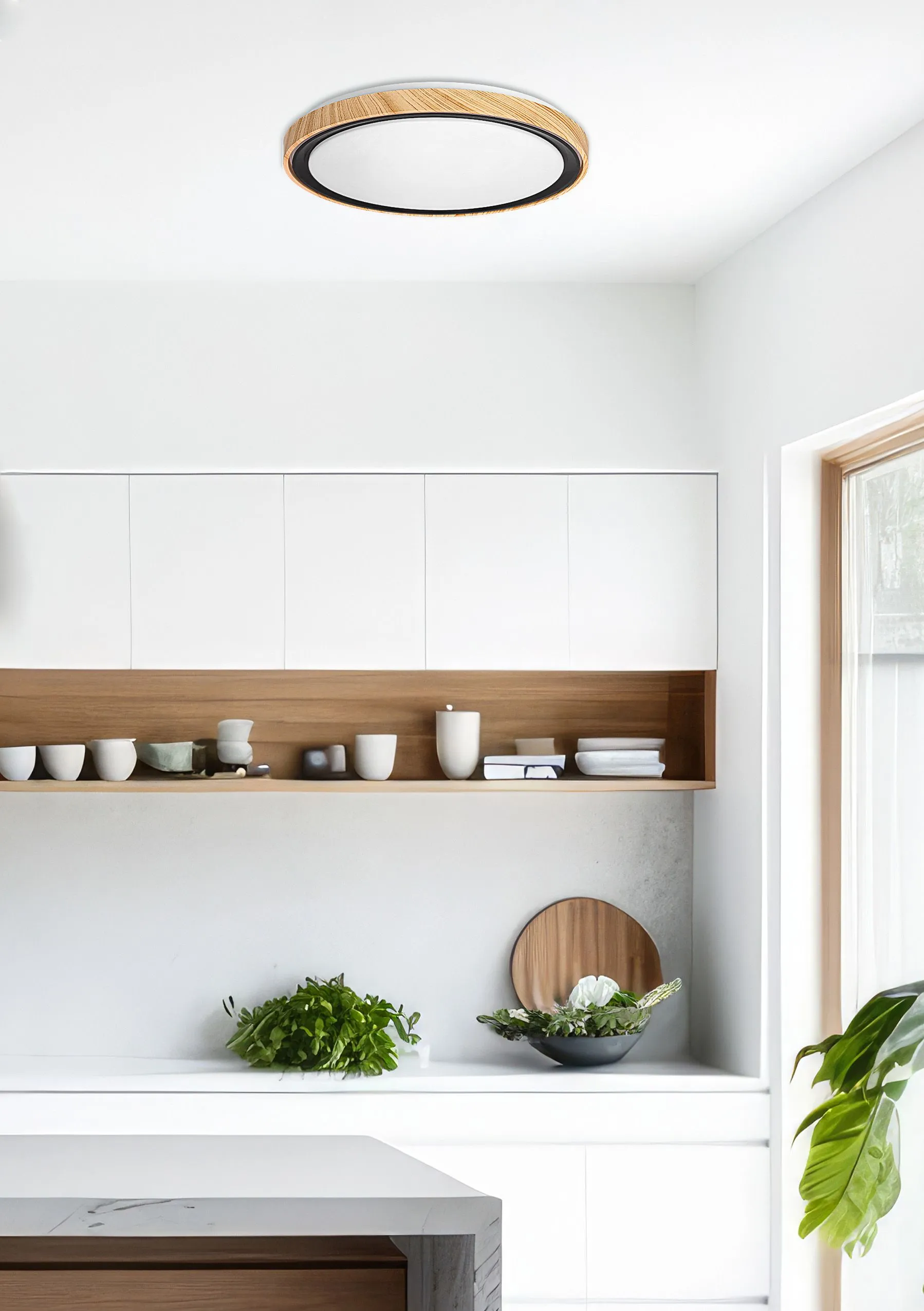 Unesite modernost i eleganciju u svoj enterijer sa Aflo plafonskom lampom. Plafonska lampa kombinuje prirodnu boju drveta sa modernom crnom završnom obradom, stvarajući moderan dekorativni element. Integrisano LED osvetljenje od 24V nudi mogućnost podešavanja boje svetla (3000K, 4000K, 6000K). Zahvaljujući ugrađenom prekidaču, možete podesiti svetlo od prijatne tople, opuštajuće dnevne svetlosti do hladno bele da biste stvorili savršenu atmosferu u skladu sa vašim potrebama. Beli abažur prečnika 38 cm obezbeđuje ravnomerno osvetljenje, idealno za dnevni boravak, spavaću sobu ili kancelariju. Aflo je kombinacija funkcionalnosti i dizajna koja će oživeti svaki enterijer.
