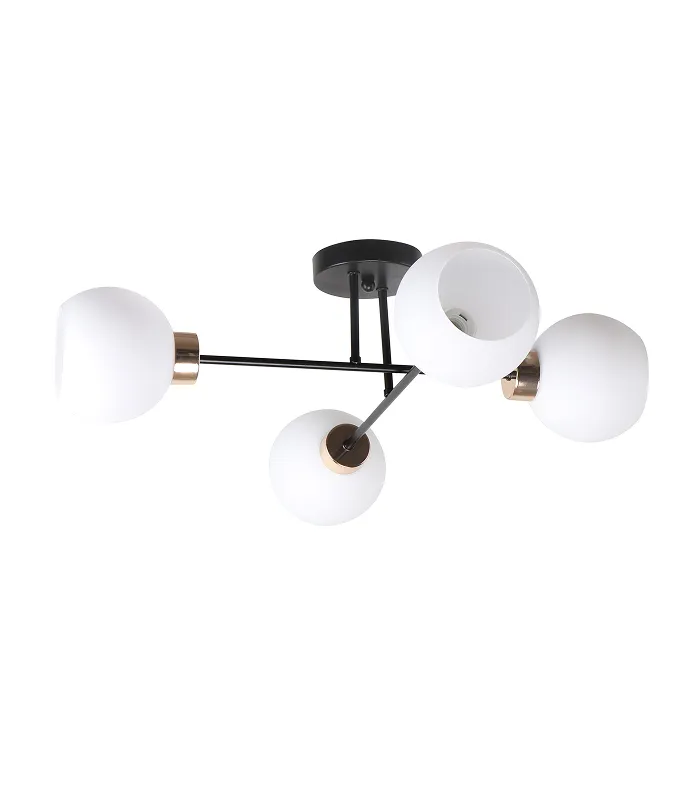 Amanda je plafonska lampa koja ima četiri izvora svetlosti, za sijalice E27 snage po 40 vati. Lampa je dvobojnog okvira, pri čemu je glavni deo crne boje sa zlatnim elementima, a abažuri su beli. Amanda plafonska lampa je sa značajnom snagom, koja se sastoji od četiri izvora svetlosti, koja obezbeđuje jako osvetljenje prostorije. Sijalice za lampu moraju imati navoj E27 i maksimalno 40 vati snage svaka. Okvir lampe je dvobojan – glavni deo je crn sa zlatnim elementima, što mu daje elegantan izgled, a abažuri koji raspršuju svetlost su beli. Ovakvo plafonsko osvetljenje može se koristiti kao glavni izvor svetlosti u dnevnoj sobi, trpezariji ili drugim većim prostorijama, uz uvođenje dekorativnog elementa i stilskog akcenta u vidu okvira u boji. Kombinacija crne, zlatne i bele boje stvara efektan izgled lampe.