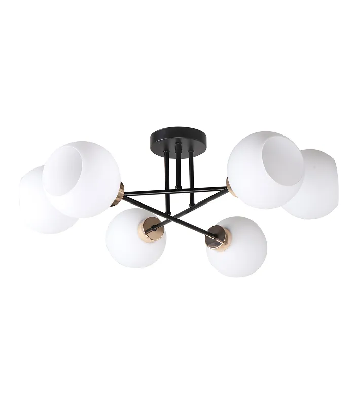 Amanda je plafonska lampa koja ima šest izvora svetlosti, za sijalice E27 snage po 40 vati. Lampa je dvobojnog okvira, glavni deo je crne boje sa zlatnim elementima, a abažuri su beli. Amanda lampa je izvor svetlosti visokog intenziteta, koji se sastoji od šest izvora svetlosti, koji obezbeđuje jako osvetljenje prostorije. Sijalice za lampu moraju imati navoj E27 i maksimalno 40 vati snage svaka. Okvir lampe je dvobojan – glavni deo je crn sa zlatnim elementima, što mu daje elegantan izgled, a abažuri koji raspršuju svetlost su beli. Takvo plafonsko osvetljenje je pogodno za veće prostorije, kao što su dnevni boravak ili trpezarija, gde je potrebno jako osvetljenje. Pored funkcije osvetljenja, Amanda lampa je i dekorativni element zahvaljujući svom elegantnom izgledu i kombinaciji boja.