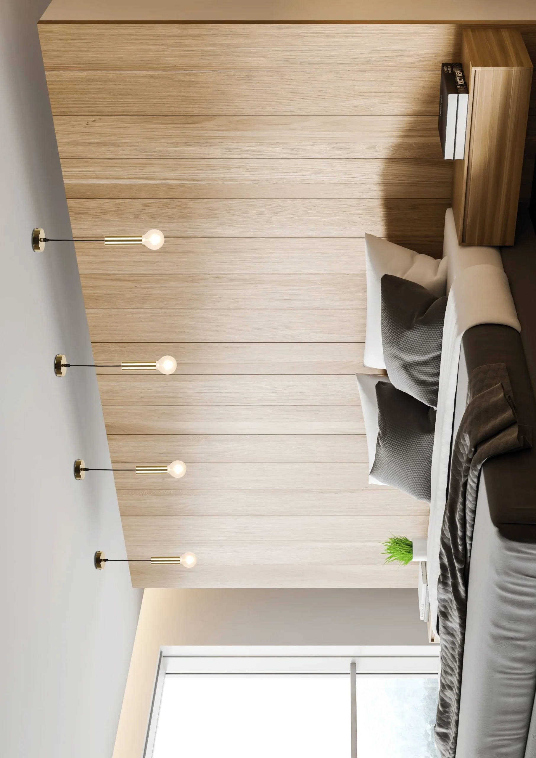 Zlatna cilindrična lampa sa dužinom okvira od 142 mm. Deo je porodice modernih svetiljki identičnog oblika posvećenih dnevnom boravku, kuhinji, trpezariji i spavaćoj sobi. Serija se sastoji od jednostrukih i trostrukih lampi u dve dužine okvira, što omogućava različite kombinacije lampi u prostoriji. Sijalica nije uključena za proizvode sa spoljnim izvorom svetlosti