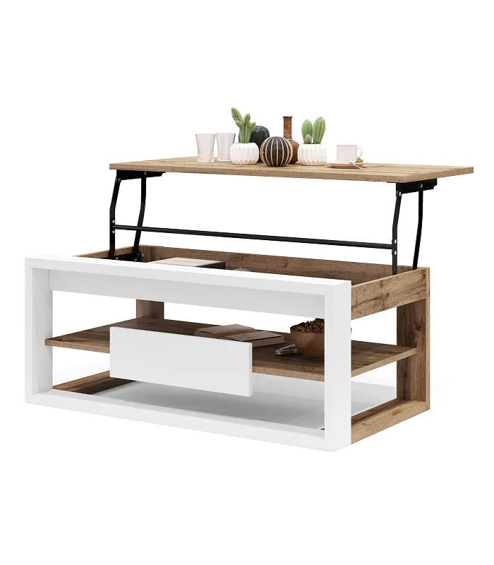 FRAME je elegantan i funkcionalan stočić za kafu, savršen za dnevnu sobu ili kancelariju sa gosteinskim kutkom. Njegova podizna ploča omogućava udobno jelo, rad sa laptopom ili jednostavno uživanje u šoljici čaja ili kafe bez potrebe da ustajete sa kauča, uz maksimalnu udobnost. Proizvedeno u EU – Poljska.
