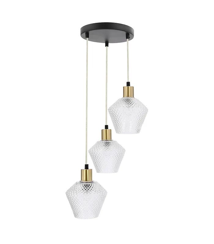 Otkrijte eleganciju uz Greniko viseću lampu! Crni okvir lampe i abažuri od providnog debelog stakla savršena su kombinacija modernog i klasike. Opremljen sa tri E14 sijalice maksimalne snage od 40V svaka, Greniko pruža jako i prijatno svetlo, idealno za osvetljenje trpezarije, dnevnog boravka ili kuhinje. Moderan dizajn i visokokvalitetni materijali čine Greniko lampu odličnim izborom za moderne i klasične enterijere. Dodajte sjaj svom domu uz Greniko lampu!
