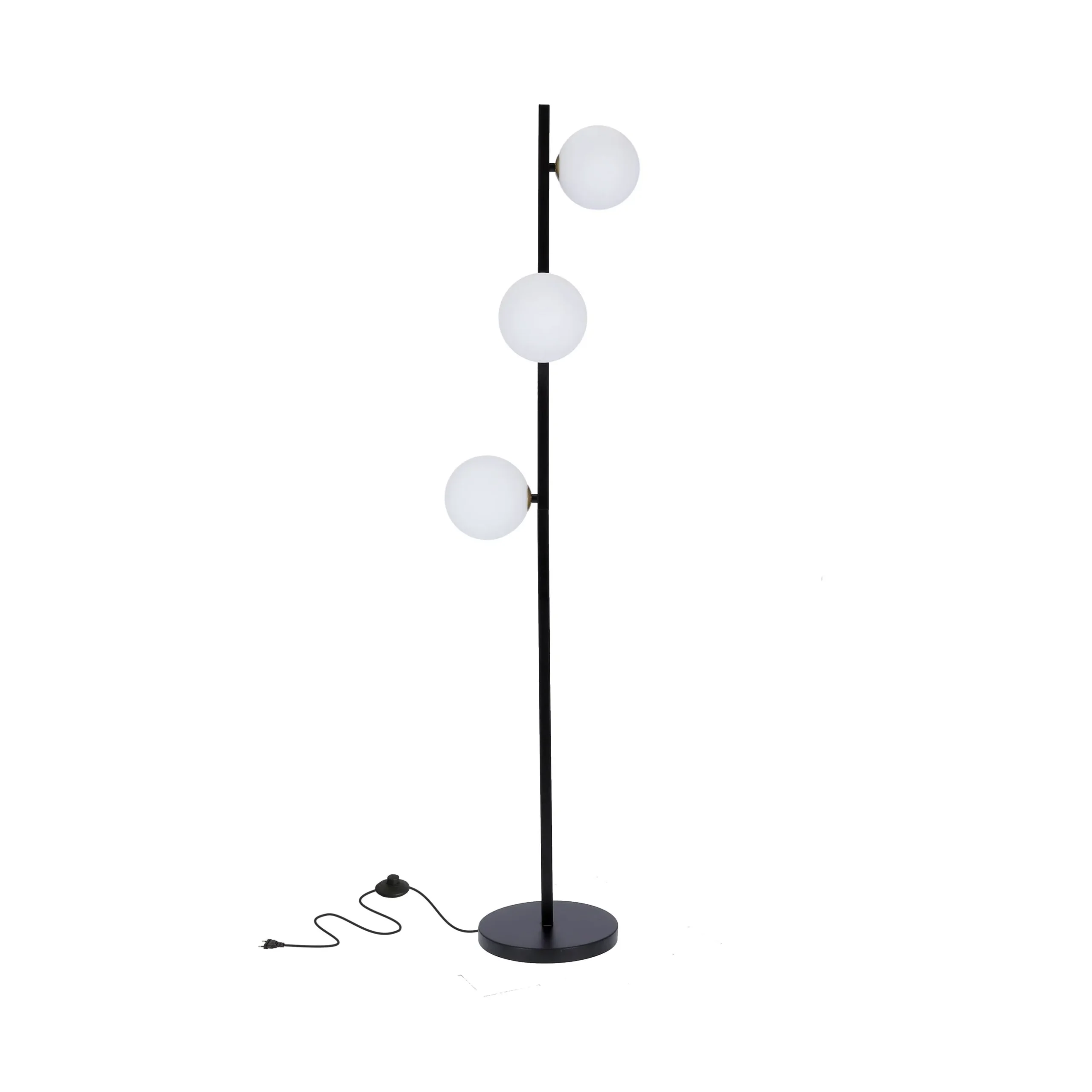 Podna lampa Kama je elegantan svetlosni element od metala, sa završnom obradom u klasičnoj crnoj boji. Tradicionalni beli abažuri u obliku lopte daju suptilan izraz, kombinujući moderan dizajn sa bezvremenskom estetikom. Idealan za enterijere koji zahtevaju elegantno, ali funkcionalno osvetljenje. Savršeno će funkcionisati u dnevnoj sobi, spavaćoj sobi ili kancelariji, unoseći toplinu i sofisticiranost u unutrašnjost.