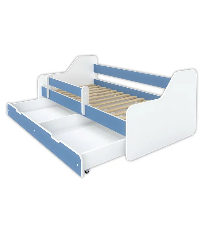 Krevet Alfa je izrađen od najkvalitetnijih ploča za nameštaj Kronospan (tvrdo presovani Univer visokog kvaliteta rađen po najsavremenijim standardima i propisima EU), čije su ivice zaobljene i učvršćene fleksibilnim PVC furnirom za bezbednu i udobnu upotrebu dece. Krevet se proizvodi dvostrano, u zavisnosti od potreba, može se postaviti kao desni ili levi. Krevet je opremljen okvirom za drveni dušek, napravljen od elastičnih traka debljine 15 mm povezanih trakom, koje mogu izdržati opterećenje do 100 kg! Prednost našeg kreveta je velika i prostrana fioka (izvučena na mekim, gumenim točkovima), koja se može koristiti kao kontejner za posteljinu. U cenu kreveta uključene su lestvice i dušek Za kupce na teritoriji Beograda, postoji mogućnost montaže uz doplatu od 2000 din. Krevet proizveden u EU
