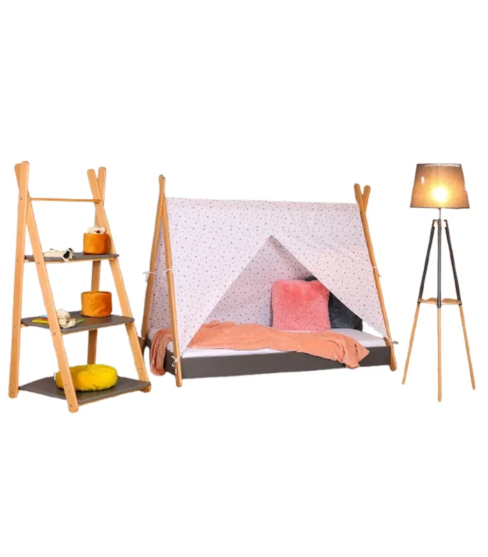 Zabavan i neobičan dizajn ovog kreveta za mališane učiniće njihovu sobicu pravim mestom za avanture. Model Tipi napravljen je od najkvalitetnijeg bukovog drveta. Svi elementi kreveta su zaobljeni radi sigurnosti vašeg deteta. Drvo bukve nema karakterističan miris, otporno je na ogrebotine. Svi drveni elementi obojeni su sertifikovanim lakom na bazi vode bez mirisa. Okvir je napravljen od bukovih opružnih lestvica prikačenih na metalne lestvice, što garantuje da će dušek biti dobro provetren i obezbediće optimalnu raspodelu težine, što značajno poboljšava udobnost spavanja. U cenu kreveta uključene su i lestvice i dušek. Nosivost kreveta je 130 kg. Za kupce na teritoriji Beograda, postoji mogućnost montaže uz doplatu od 2000 din. Krevet proizveden u EU