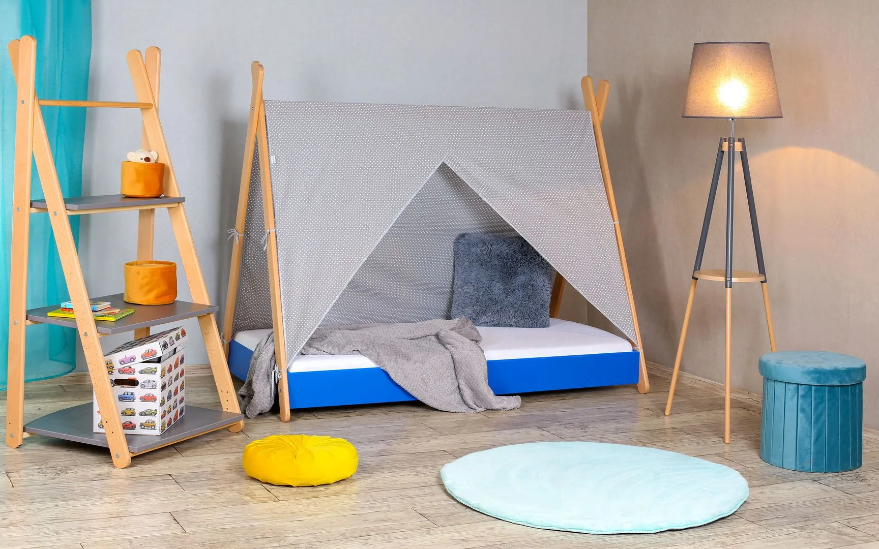 Zabavan i neobičan dizajn ovog kreveta za mališane učiniće njihovu sobicu pravim mestom za avanture. Model Tipi napravljen je od najkvalitetnijeg bukovog drveta. Svi elementi kreveta su zaobljeni radi sigurnosti vašeg deteta. Drvo bukve nema karakterističan miris, otporno je na ogrebotine. Svi drveni elementi obojeni su sertifikovanim lakom na bazi vode bez mirisa. Okvir je napravljen od bukovih opružnih lestvica prikačenih na metalne lestvice, što garantuje da će dušek biti dobro provetren i obezbediće optimalnu raspodelu težine, što značajno poboljšava udobnost spavanja. U cenu kreveta uključene su i lestvice i dušek. Nosivost kreveta je 130 kg. Za kupce na teritoriji Beograda, postoji mogućnost montaže uz doplatu od 2000 din. Krevet proizveden u EU