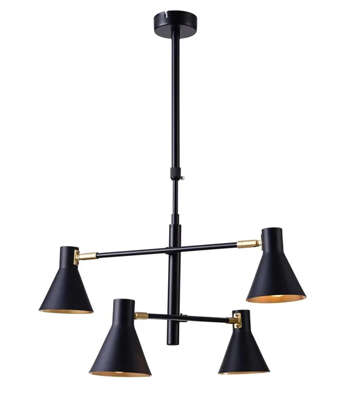 Moderna verzija elegancije. Duboka crna u kombinaciji sa prigušenim zlatom će dodati karakter svakom prostoru. Savršeno će funkcionisati i u dnevnoj sobi iznad stola i iznad kuhinjskog ostrva. Metalni abažuri, lako se održavaju čistim. Mogućnost podešavanja nagiba abažura u dve ravni osigurava da su izabrana područja osvetljena.