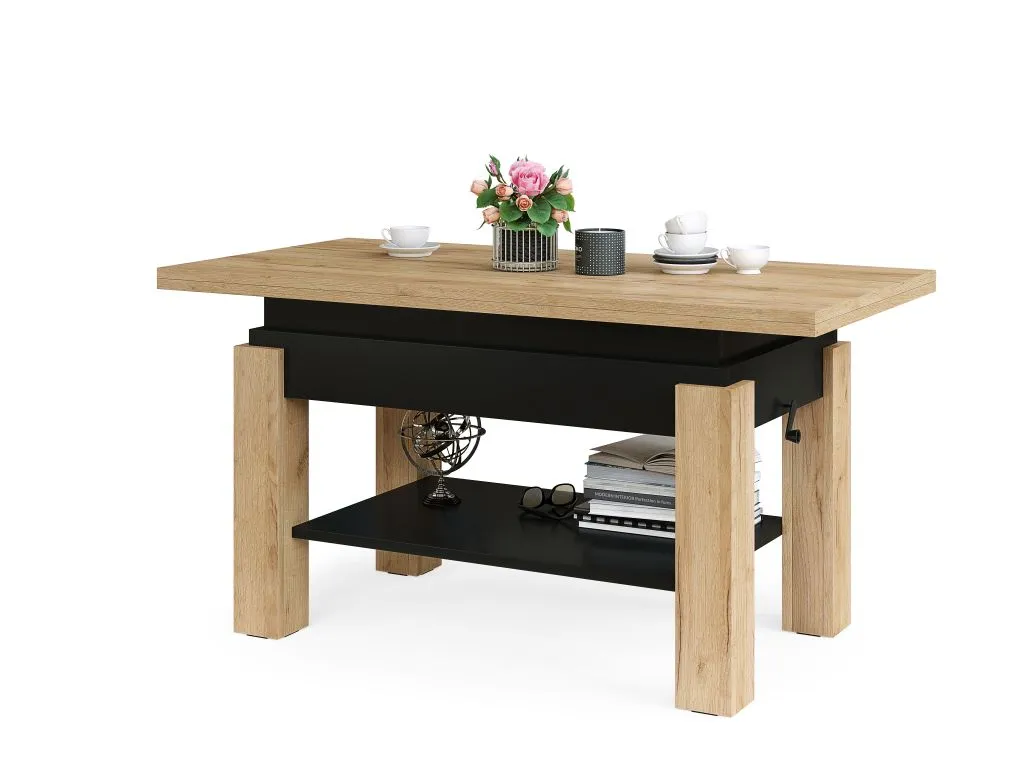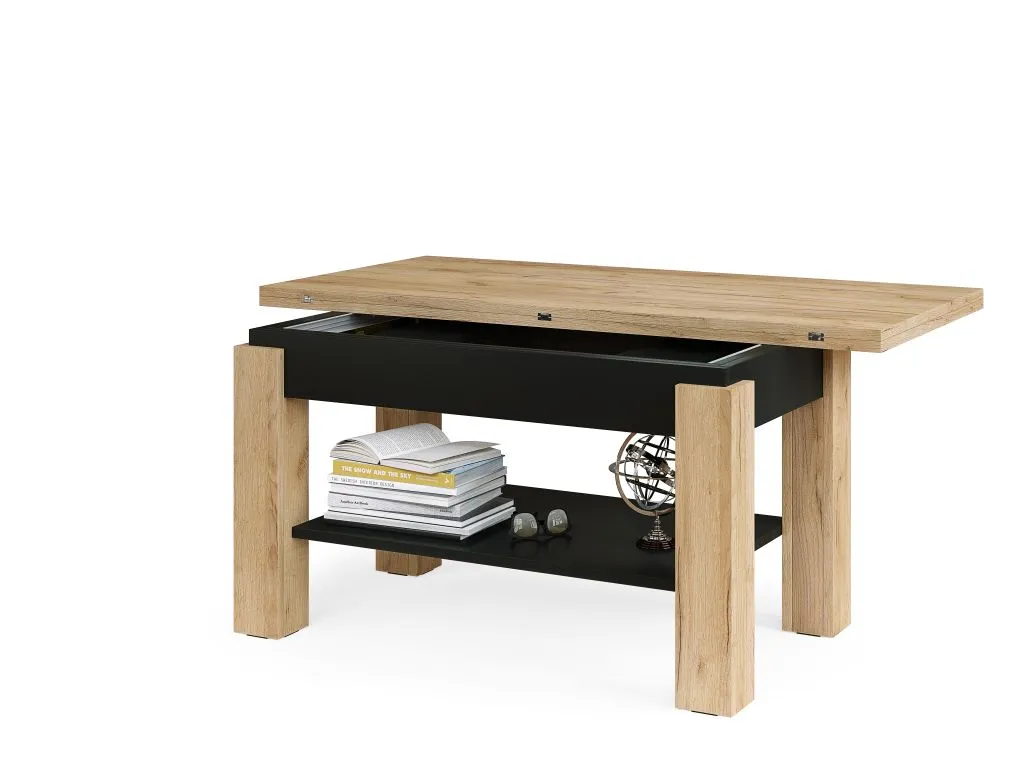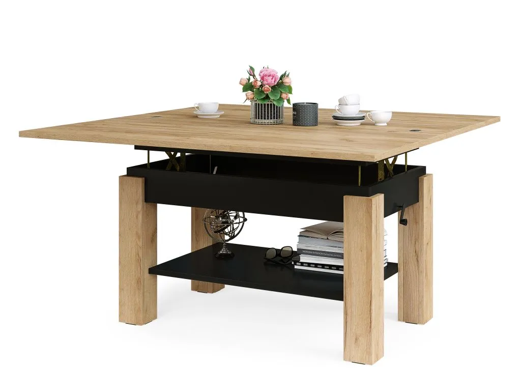 zahvaljujući kompaktnoj veličini kada je rasklopljen i zaista velikoj površini stola kada se sklopi poput knjige, ovaj stočić za kafu je savršen za male i srednje prostore. Sistem podizanja omogućava glatko podešavanje visine pomoću kurble, u rasponu od 60 do 72 cm. Stabilne i čvrste noge obezbeđuju otpornost na velika opterećenja, a prostrana polica osigurava da su vam neophodne stvari uvek na dohvat ruke. Proizvedeno u EU – Poljska.