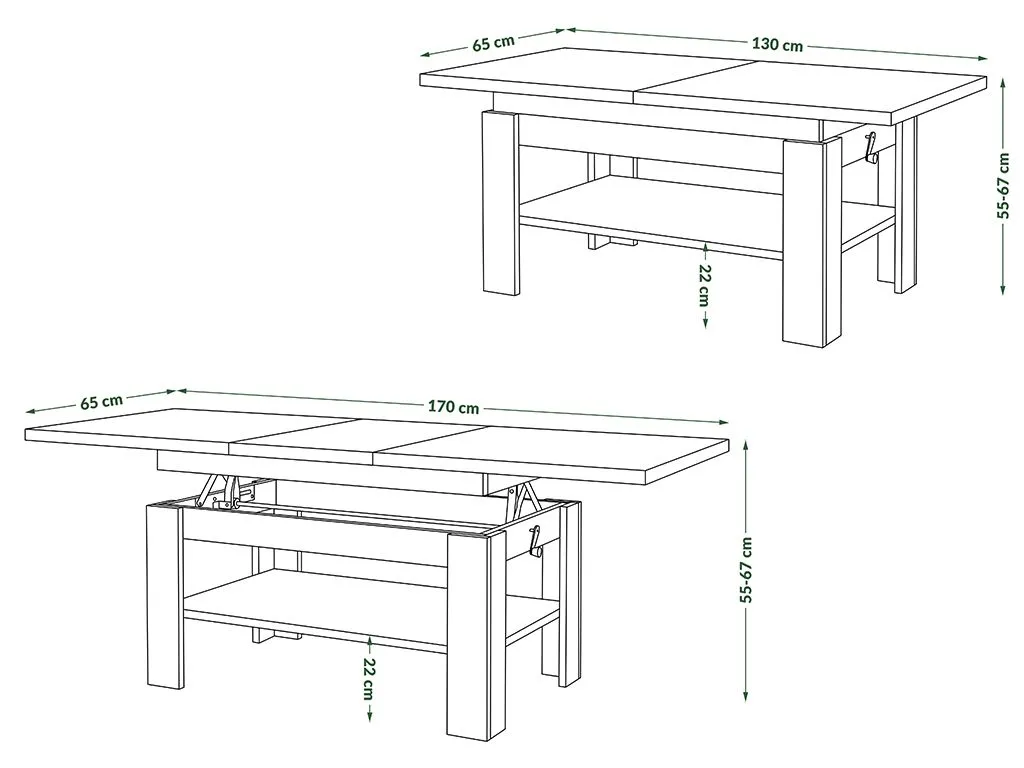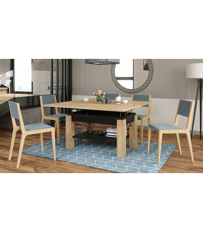 Odlična opcija za one koji cene funkcionalnost. U zavisnosti od vaših potreba, ovaj model može poslužiti kao klupa u dnevnoj sobi ili udoban trpezarijski sto, savršen za uživanje u obrocima ili proslavu porodičnih okupljanja. Visokokvalitetni sinhroni klizni stolovi obezbeđuju lako i praktično produženje ploče stola, dok mehanizam za podizanje omogućava fleksibilno podešavanje visine između 55 i 67 cm. Šlag na torti je velika polica na dnu, osiguravajući da su vam sve neophodne stvari uvek na dohvat ruke. Proizvedeno u EU – Poljska.