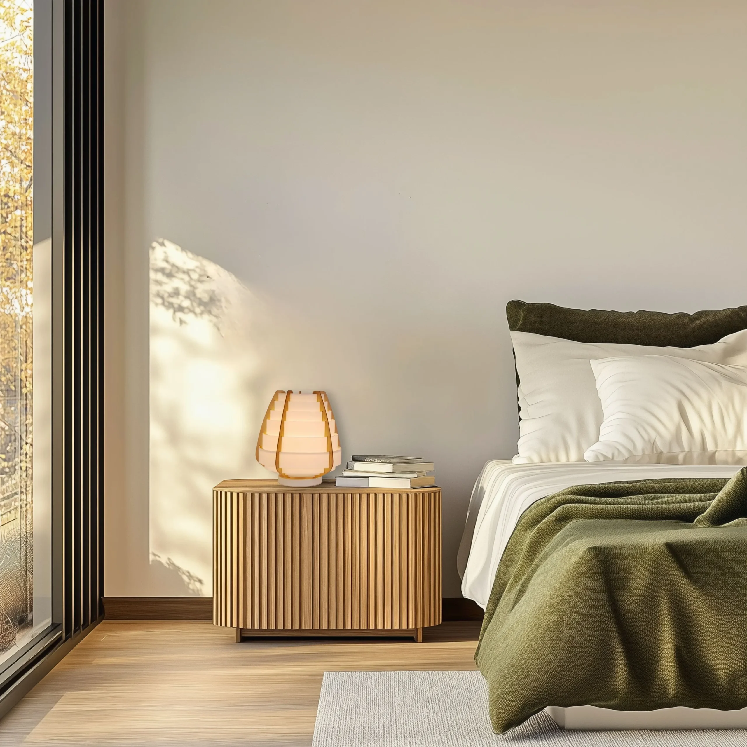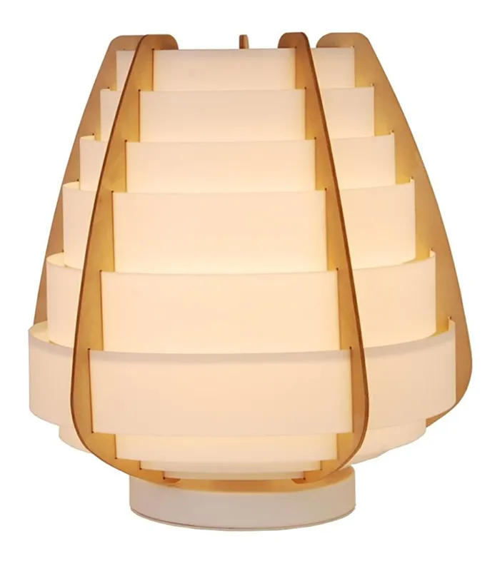 Serija lampi inspirisana japanskim stilom sa strukturom abažura od svetle bele plastike sa drvenim elementima. Idealno za dnevne sobe, trpezarije, spavaće sobe. Velika stona lampa sa jednom svetlosnom tačkom. Može biti važan element dizajna enterijera. Sijalica nije uključena za proizvode sa spoljnim izvorom svetlosti.
