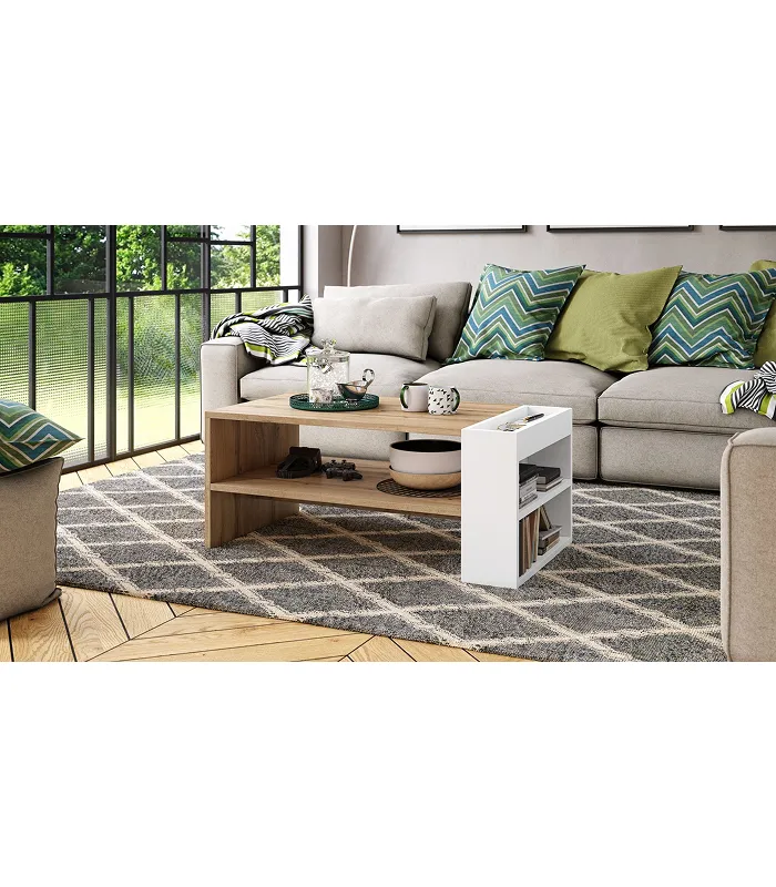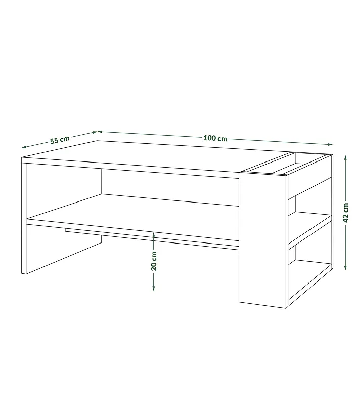Izuzetno funkcionalan i elegantan stočić za kafu, dizajniran da ispuni očekivanja čak i najzahtevnijih korisnika. Mala „kutija za organizaciju“ integrisana u ploču stola omogućava vam da lako organizujete predmete kao što su daljinski upravljač, naočare ili sveska/olovka. Prostrana polica ispod ploče stola i mala bočna polica osiguravaju da su najneophodnije stvari uvek na dohvat ruke. Šta više možete poželeti? Proizvedeno u EU – Poljska.