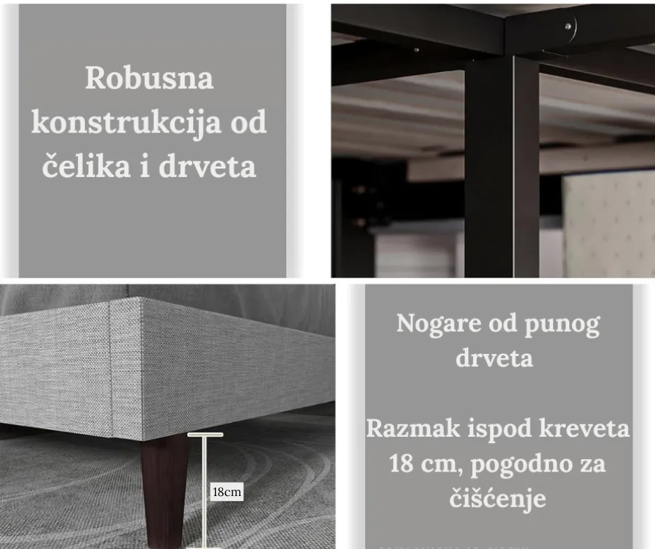 Krevet u čisto sivoj boji je napravljen od visokokvalitetne lanene tkanine, što zadovoljava uklapanje u prostor, daje prostoriji toplu i modernu atmosferu i jedinstvenu je boju sobe